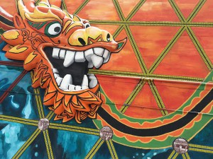 By Sophie Zhang Red and yellow pigment splashes above glittering glass mosaic on two Chinatown murals, connects dozens of photos featuring residents to the body