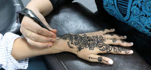 By Madhurita Goswami Medill Reports Twenty-four-year-old Juna Syakya can draw intricate flowers or butterflies on your hands with her henna cone in less than 20