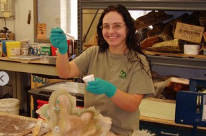 By Danielle Prieur Erin Fitzgerald and her dinosaur models (Courtesy of Fitzgerald/ University of Chicago) Erin Fitzgerald bends over a cast of a dinosaur as